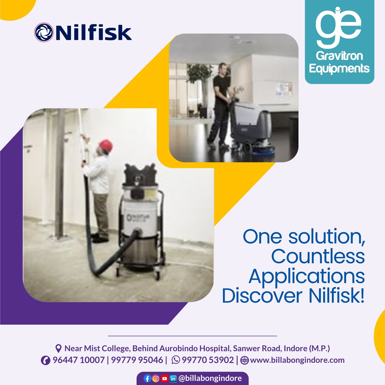Nilfisk Cleaning Machine Supplier in Indore If you are looking for a reliable Nilfisk cleaning machine supplier in Indore, Gravitron Equipments offers a complete range of advanced cleaning solutions for commercial and industrial needs. We supply high-performance Nilfisk machines including scrubber dryers, vacuum cleaners, high-pressure washers, and industrial sweepers designed for efficient and deep cleaning. Gravitron Equipments focuses on providing durable, energy-efficient, and easy-to-operate cleaning equipment suitable for factories, warehouses, hospitals, malls, offices, and large facilities. Their expert team helps customers choose the right Nilfisk machine based on specific cleaning requirements and floor types. Along with product supply, they also offer installation support, demonstration, and after-sales service to ensure smooth operation and long-term performance. Known for quality products and professional service, Gravitron Equipments has built a strong reputation in Indore. Choose Gravitron Equipments for genuine Nilfisk cleaning machines in Indore and upgrade your cleaning efficiency with reliable, high-performance equipment tailored to your business needs.